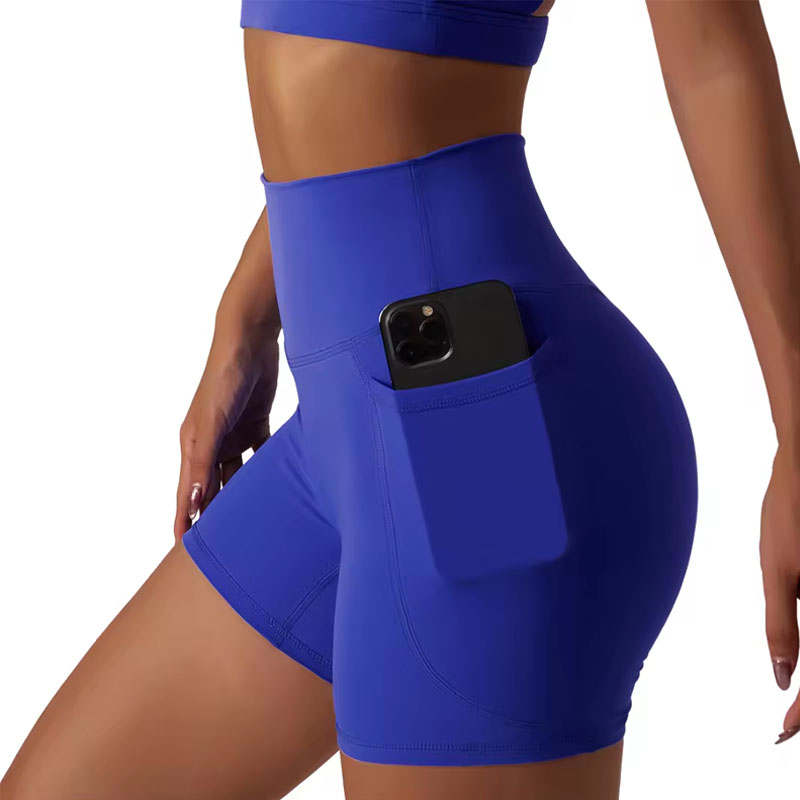 Women Sport Shorts Side Pocket Shorts High Waist Yoga Shorts